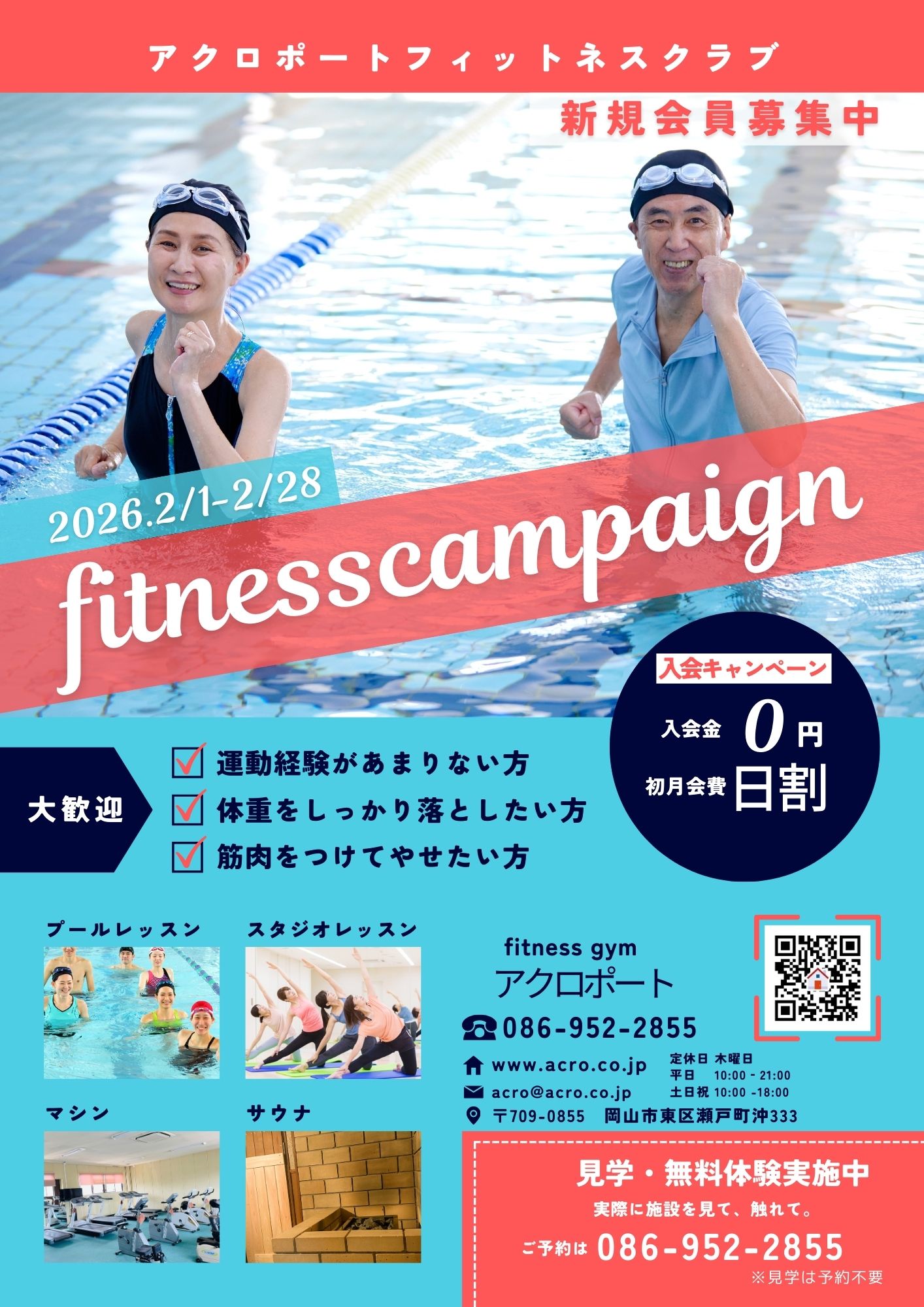 大人:フィットネスキャンペーン&子供:スイミングスクールの